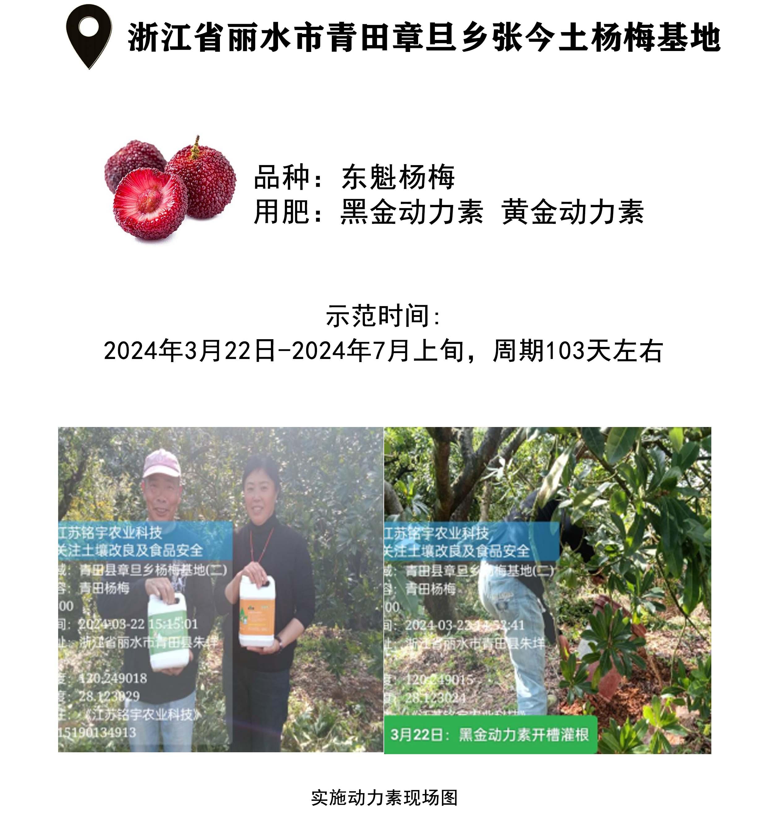 聚宇能生態動力素,浙江省麗水市青田章旦鄉張今土楊梅基地示范成果展示"/>